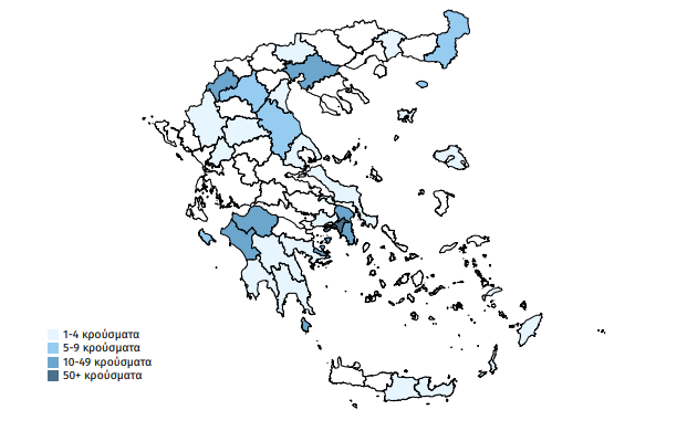 Χάρτης της Ελλάδας με επιβεβαιωμένα κρούσματα:
