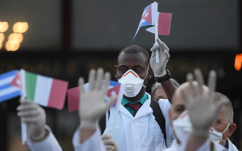 Η Κούβα απέστειλε στην Ιταλία ομάδα 52 γιατρών και νοσηλευτών, ορισμένοι από τους οποίους διαθέτουν εμπειρία από την καταπολέμηση της επιδημίας Έμπολα στην Αφρική, για να βοηθήσουν την χώρα αυτή που πλήττεται βαρύτατα από την επιδημία Covid-19 στην καταπολέμησή της.