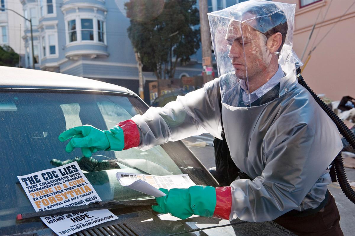 Στην ταινία ο Τζουντ Λο ενσαρκώνει το ρόλο ενός ανενδοίαστου μπλόγκερ, που υποστηρίζει ότι η κοινή γνώμη δεν έχει μάθει όλη την αλήθεια σχετικά με αυτό που συμβαίνει, πυροδοτώντας μια επιδημία παράνοιας και τρόμου εξίσου επικίνδυνη με τον ίδιο τον ιό. Ενώ ισχυρίζεται ότι ένα φυτό, η forsythia, μπορεί να σκοτώσει τον ιό…