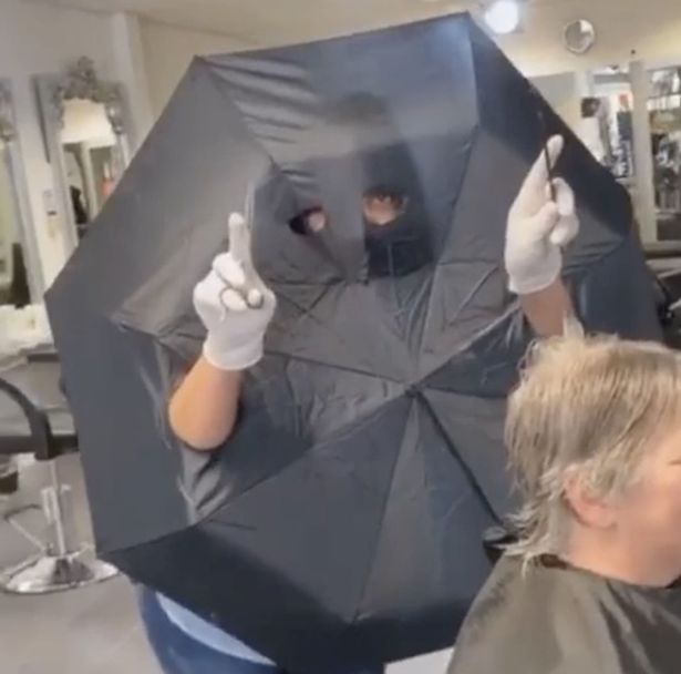 Η κομμώτρια έκοψε τρύπες σε μια ομπρέλα για τα χέρια και τα μάτια της και την «φόρεσε» την ώρα που πραγματοποιούσε τα ραντεβού της με τους πελάτες της. Επιπλέον, φόρεσε πλαστικά γάντια μιας χρήσης και συνέχισε να εργάζεται κανονικά στο κομμωτήριο Bella Rosa στο Oss της Ολλανδίας.