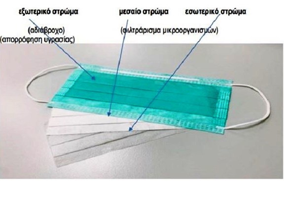 Περιγραφή των στρωμάτων της απλής χειρουργικής μάσκας