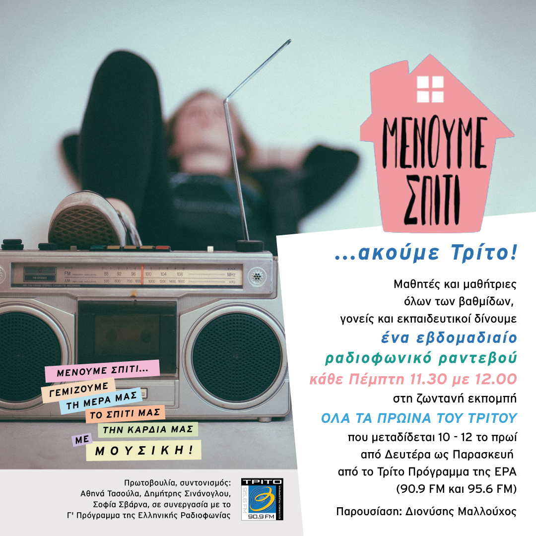 Εδομαδιαίο ραδιοφωνικό ραντεβού με μαθητές, μαθήτριες και εκπαιδευτικούς Μουσικής αρχίζει στο Τρίτο Πρόγραμμα της Ελληνικής Ραδιοφωνίας, από την Πέμπτη 9 Απριλίου 2020.