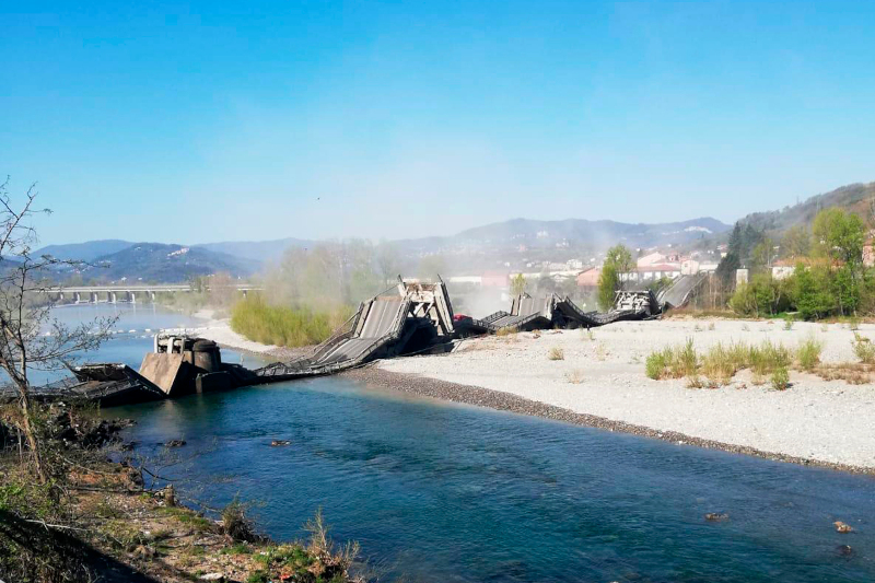 Γέφυρα μήκους 260 μέτρων κατέρρευσε στην Ιταλία, ευτυχώς χωρίς να υπάρξουν θύματα λόγω της απαγόρευσης κυκλοφορίας εξαιτίας του κορωνοϊού