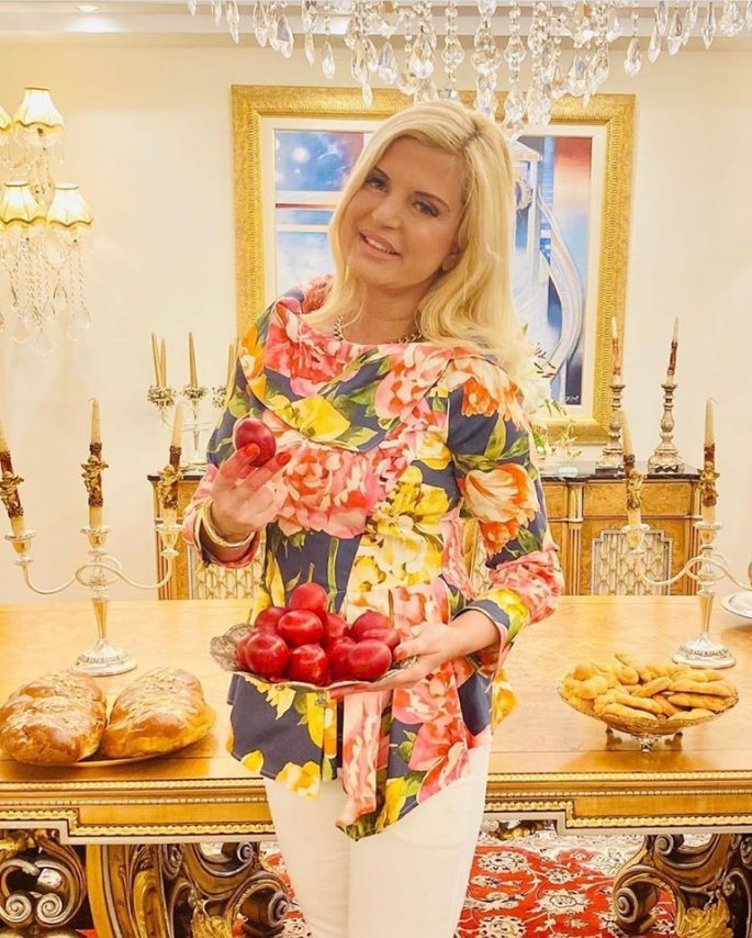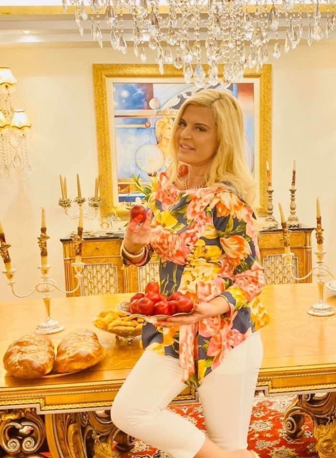 Η δημοτική σύμβουλος Αμαρουσίου και σύζυγος του Περιφεριάρχη Αττικής, Μαρίνα Πατούλη, πόζαρε στο σαλόνι της, κρατώντας τα κόκκινα αυγά που έχει ετοιμάσει για το Πάσχα.
