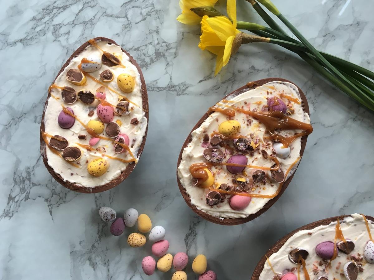 Μπορείτε να γεμίσετε τα πασχαλινά αυγά σας με μους σοκολάτας, κρέμα με μπισκότα όρεο, με προφιτερόλ,με παγωτό, με σαβαγιάρ και κρέμα τιραμισού και οτιδήποτε άλλο σας αρέσει.