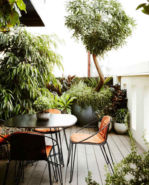 Σε ελάχιστα τετραγωνικά τοποθετήθηκαν πάρα πολλές γλάστρες από διάφορα υλικά με έμφαση στο γρανίτη και το τσιμέντο. Το σετ τραπεζαρίας είναι μικρού μεγέθους, ενώ τα φυτά είναι διαφόρων ειδών και με πολύ διαφορετική υφή.