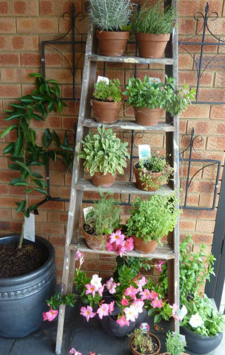 Μια σκάλα διακόσμησης δημιουργεί μπόλικο κάθετο χώρο για να ακουμπήσεις ακόμα περισσότερα φυτά και να φτιάξεις την δική σου πράσινη γωνιά.