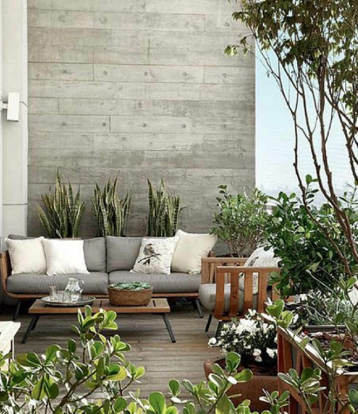 Μια γωνία με στρογγυλές τσιμεντένιες γλάστρες και φυτά με διαφορετική υφή, είναι μια πανέμορφη λύση για μικρό μπαλκόνι ή κήπο.