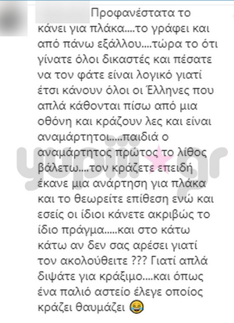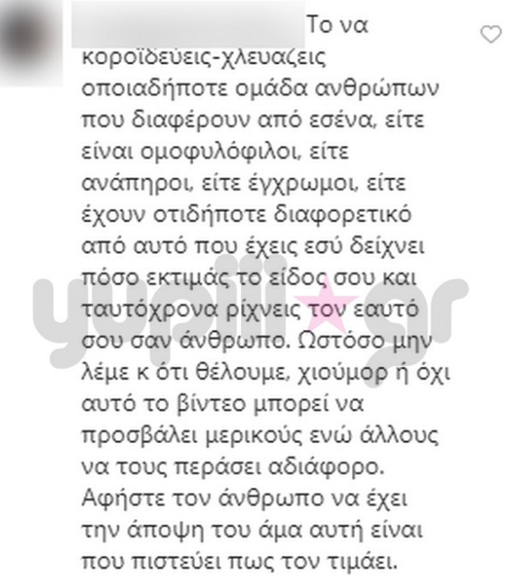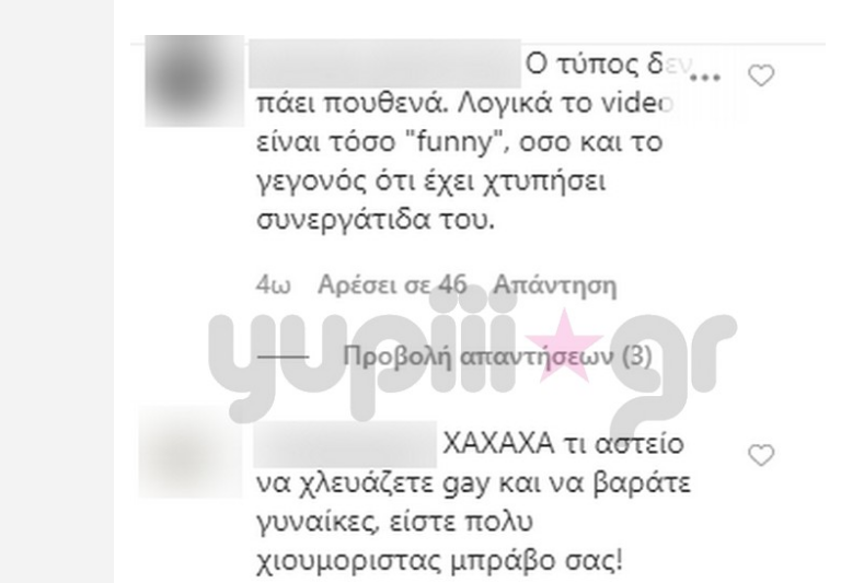 Η συμπεριφορά του αυτή ενόχλησε πολλούς ακόλουθους του με τα επιθετικά σχόλια να έρχονται το ένα μετά το άλλο, ενώ αρκετοί ήταν και εκείνοι δεν δίστασαν να το συγκρίνουν και με το πολυσυζητημένο περιστατικό με τη Σοφία Παυλίδου. Ωστόσο, δεκάδες ήταν και τα σχόλια που εξέλαβαν ως χιουμοριστικό το video και τον στήριξαν λέγοντας πως ο ίδιος δεν είχε πρόθεση να θίξει ή να προσβάλει κάποια πλευρά.