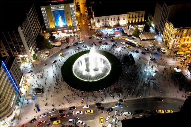 Αρκετοί βρέθηκαν στην Ομόνοια για να κάνουν βόλτα και να τραβήξουν φωτογραφίες από το φωταγωγημένο συντριβάνι.