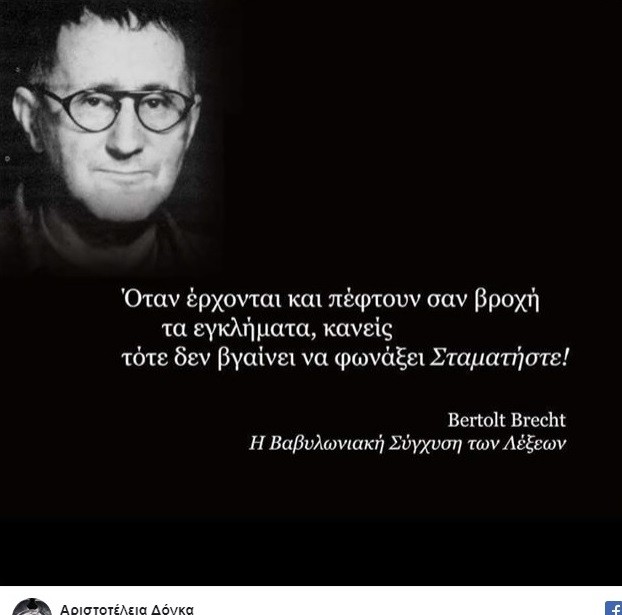 «Όταν έρχονται και πέφτουν σαν βροχή τα εγκλήματα, κανείς τότε δεν βγαίνει να φωνάξει Σταματήστε!», έγραψε «δείχνοντας» εμμέσως όσους την έκριναν για τη γεμάτη συναισθηματισμό αγόρευσή της.