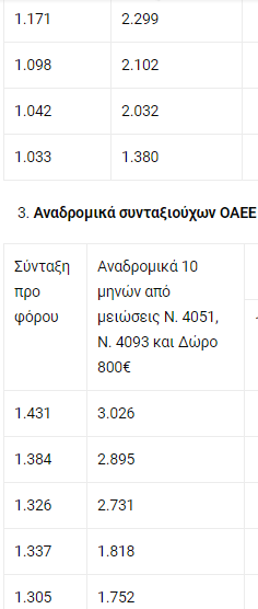 Σύμφωνα με τους πίνακες που επεξεργάστηκε και δημοσιεύει ο «Ελεύθερος Τύπος», στους συνταξιούχους του Δημοσίου (πολιτικούς και απόστρατους) τα αναδρομικά που δικαιούνται με ή χωρίς την επιστροφή της ΕΑΣ προκύπτουν ως εξής: