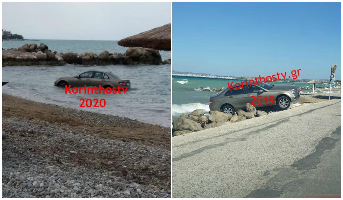 Σύμφωνα με την ιστοσελίδα Korinthos TV, ένας απρόσεκτος οδηγός την ώρα που έβαλε μπρος τη μηχανή, έβαλε όπισθεν και το Ι.Χ τσούλησε προς τα πίσω, πέρασε έξω από την κεντρική πόρτα, διέσχισε κάθετα τον δρόμο, καβάλησε τα βράχια και έπεσε στην θάλασσα.