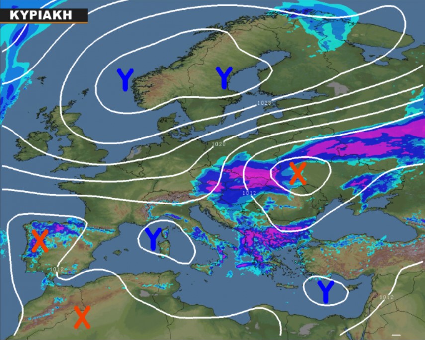 Την Κυριακή βροχές και τοπικές καταιγίδες αναμένουμε αρχικά στο Ιόνιο και προοδευτικά και σε ηπειρωτικές περιοχές με έμφαση τις θερμές ώρες της ημέρας. Προς το βράδυ τα φαινόμενα θα επεκταθούν και σε περιοχές του Αιγαίου.