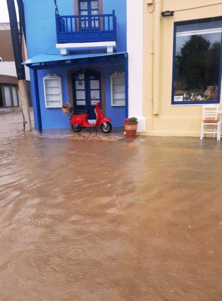 Πρωτοφανής κακοκαιρία έπληξε την Λέρο τα τελευταία 24ωρα με τους δρόμους να μετατρέπονται σε ποτάμια μέσα σε λίγα λεπτά και την στεριά να γίνεται ένα με την θάλασσα.