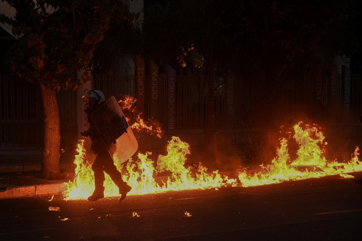 Σύμφωνα με την ΕΛΑΣ, διαδηλωτές επιτέθηκαν με μολότοφ, πέτρες και άλλα αντικείμενα σε αστυνομικές δυνάμεις που βρίσκονταν στο σημείο, ενώ έβαλαν φωτιά σε κάδους απορριμμάτων. Οι αστυνομικές δυνάμεις από την πλευρά τους, προσπάθησαν να απωθήσουν τους διαδηλωτές.