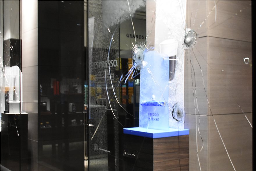 Νωρίτερα, άγνωστοι έσπασαν βιτρίνες καταστημάτων στο Κολωνάκι, ενώ πέταξαν πέτρες εναντίον κλούβας των ΜΑΤ στην Ηρώδου Αττικού.