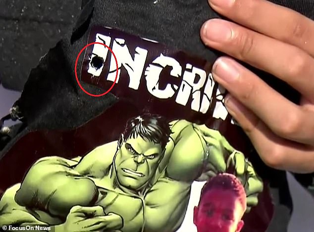 Η φωτογραφία που βλέπετε δείχνει τον μικρούλι Έντζο να φοράει μια μαύρη μπλούζα και να κρατάει μια κούκλα του αγαπημένου του Χούλκ. Η φωτογραφία τραβήχτηκε λίγα λεπτά πριν το φονικό. Σε μια άλλη φωτογραφία βλέπετε πως η σφαίρα τρύπησε την μπλούζα και σκότωσε τον μικρό.