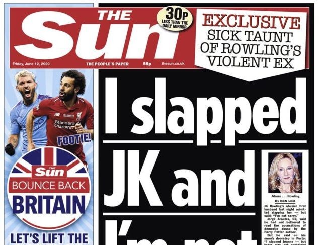 Περισσότερες από 500 καταγγελίες από φορείς, σωματεία και πολίτες προκάλεσε εξώφυλλο της σκανδαλοθηρικής εφημερίδας «The Sun», η οποία φιλοξενεί συνέντευξή του πρώην άνδρα της JK Rowling να λέει πως την χτύπησε αλλά «δεν το μετανιώνει».