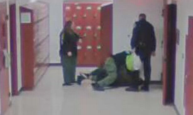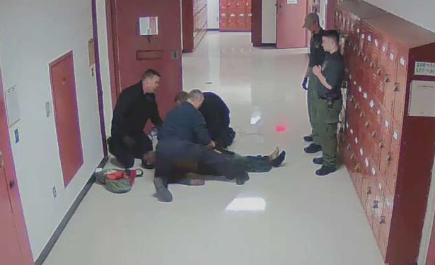 Τα βίντεο, που τραβήχτηκαν από δύο κάμερες, δείχνουν ότι ο Χίγκινς έτρεχε στις εγκαταστάσεις και άρπαξε τη Mary Broglin, μια γυναίκα αστυνομικό.