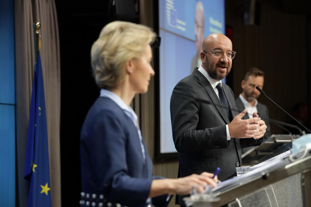 Η Ούρσουλα Φον Ντερ Λάιεν, έκανε λόγο για «θετικό κλίμα» και εστίασε «στη σοβαρότητα αυτής της κρίσης» τονίζοντας ότι το Σχέδιο Ανάκαμψης του Ευρωπαϊκού Κοινοβουλίου, είναι «ένα φιλόδοξο σχέδιο». Σύμφωνα με την ίδια, παραμένουν οι διαφορετικές απόψεις, αλλά εκτιμά πως μπορεί να υπάρξει συμφωνία.Σαρλ Μισέλ