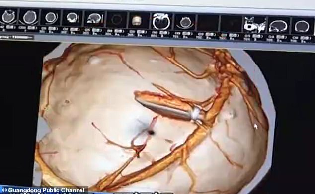 Το περιστατικό συνέβη σε οικοδομή στην πόλη Φοσχάν στην Κίνα. Ένας οικοδόμος κάρφωνε με το ειδικό πιστόλι καρφιά στο τσιμεντένιο ταβάνι, όταν θεώρησε ότι το πιστόλι «κόλλησε».