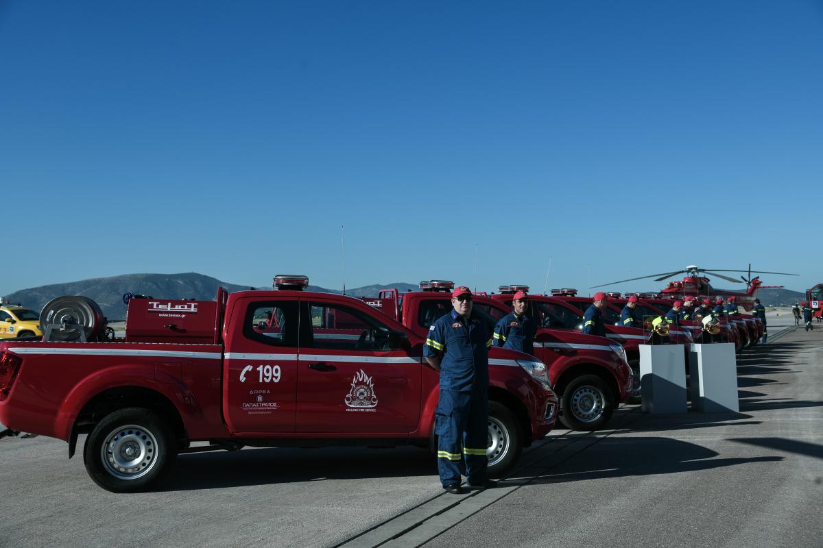 Για τη δωρεά των 20 πυροσβεστικών οχημάτων υπογράμμισε ότι «έρχεται την κατάλληλη στιγμή», καθώς και ότι «φέτος είμαστε πιο έτοιμοι από ποτέ». Αναλυτικά αναφέρθηκε στη λειτουργία του συστήματος 112, στο ότι φέτος είναι 1300 περισσότεροι οι εποχιακοί πυροσβέστες, συνολικά 126 τα νέα οχήματα και ανανεωμένο το υλικό αυτοπροστασίας των επιχειρούντων.