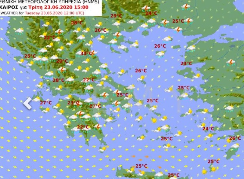 Ανεμοι: Δυτικοί βορειοδυτικοί 3 με 4 και στο Ιόνιο τοπικά 5 μποφόρ. Θερμοκρασία: Από 16 έως 29 βαθμούς Κελσίου. Στην Ήπειρο 3 με 4 βαθμούς χαμηλότερη.