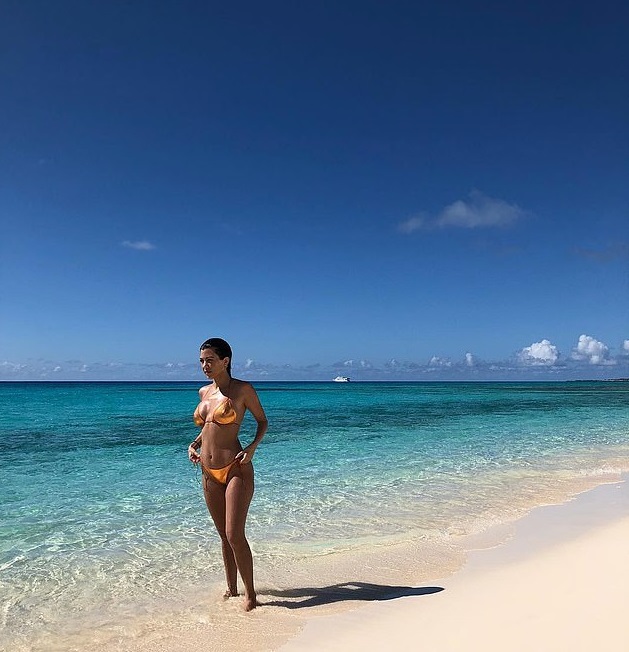 Φορώντας μόνο ένα χρυσό μπικίνι βγήκε από το κρυστάλλινο γαλάζιο νερό.