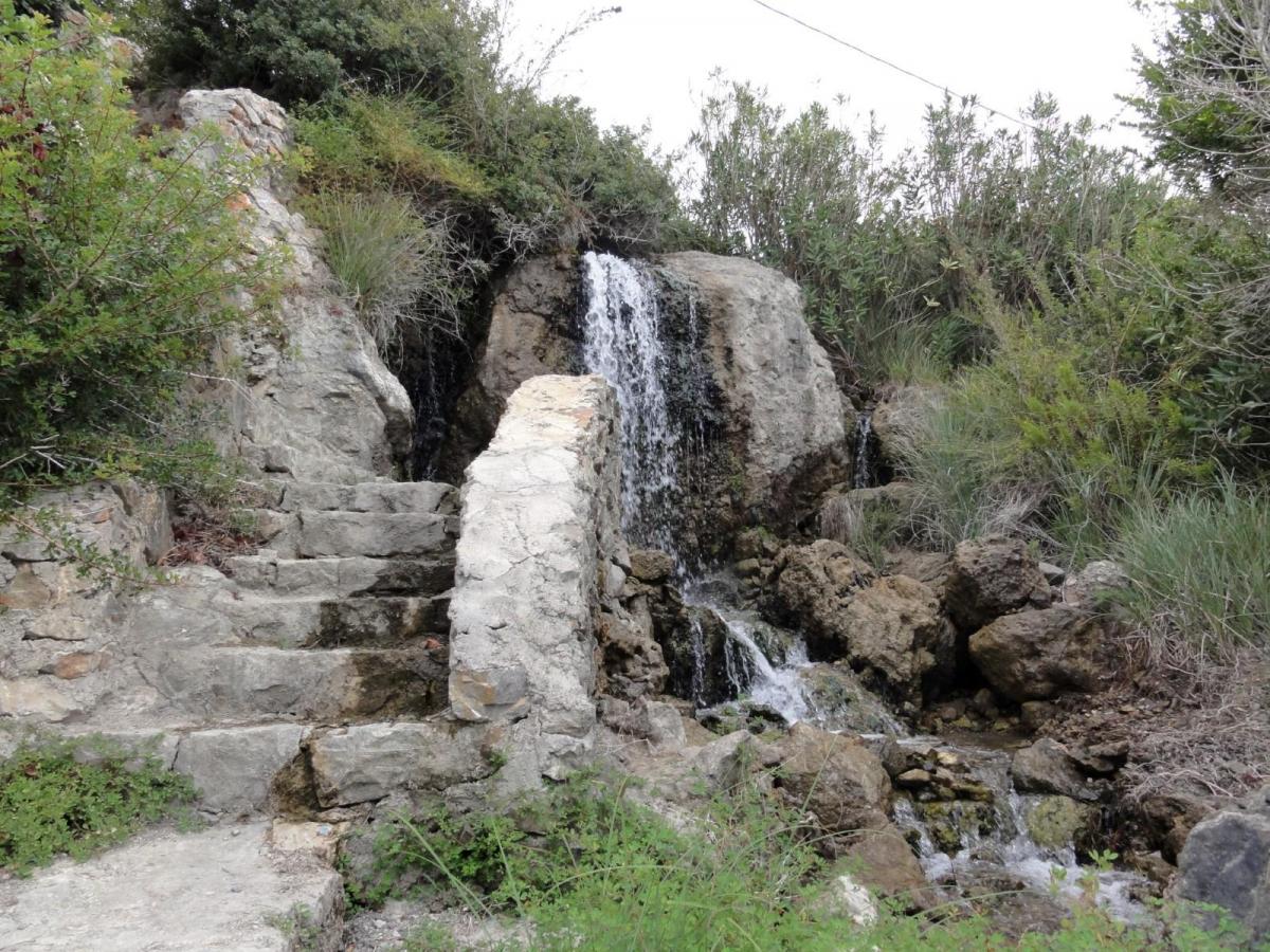 Ακριβώς στο σημείο που τελειώνει η παραλία στα δυτικά, υπάρχει ένας εντυπωσιακός καταρράκτης που ρίχνει το νερό του απευθείας στην παραλία και έχει νερό όλο το χρόνο.