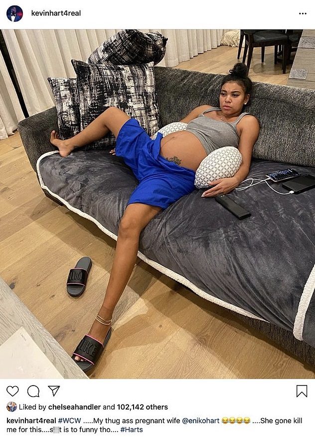 Η 35χρονη Ένικο Χαρτ, 35 ετών, δεν περίμενε ότι η τελευταία της πόζα θα ανέβαινε στο Instagram, με τον σύζυγο Κέβιν Χαρτ να μοιράζεται μια ειλικρινή φωτογραφία της συζύγου του που απλώνεται στον καναπέ τους την Τετάρτη, προφανώς αγνοώντας ότι φωτογραφήθηκε.
