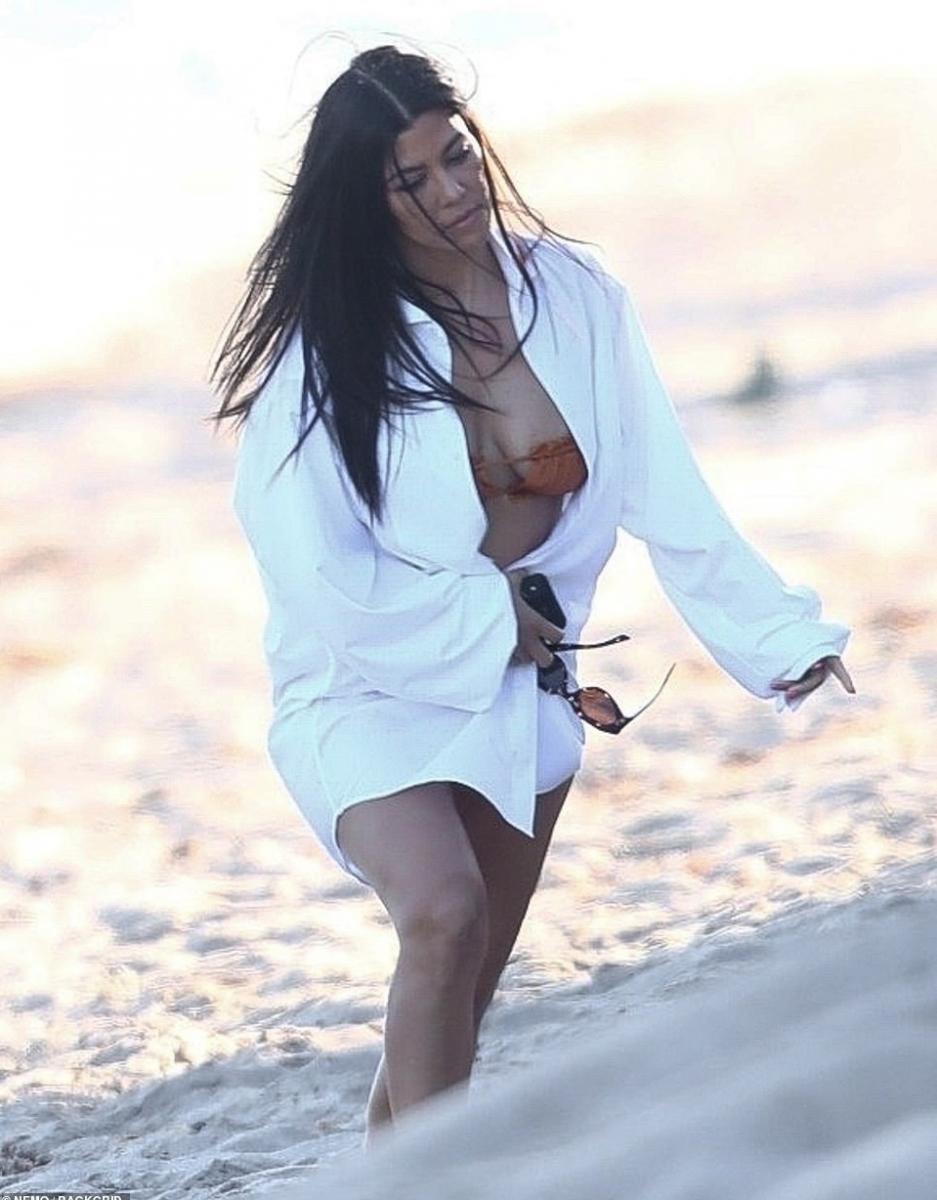 Αν και η Disick έμεινε μακριά από την άμμο, η Kourtney δεν έδειξε αυτοσυγκράτηση καθώς περπατούσε κατά μήκος της παραλίας με την αδερφή και τους φίλους της.