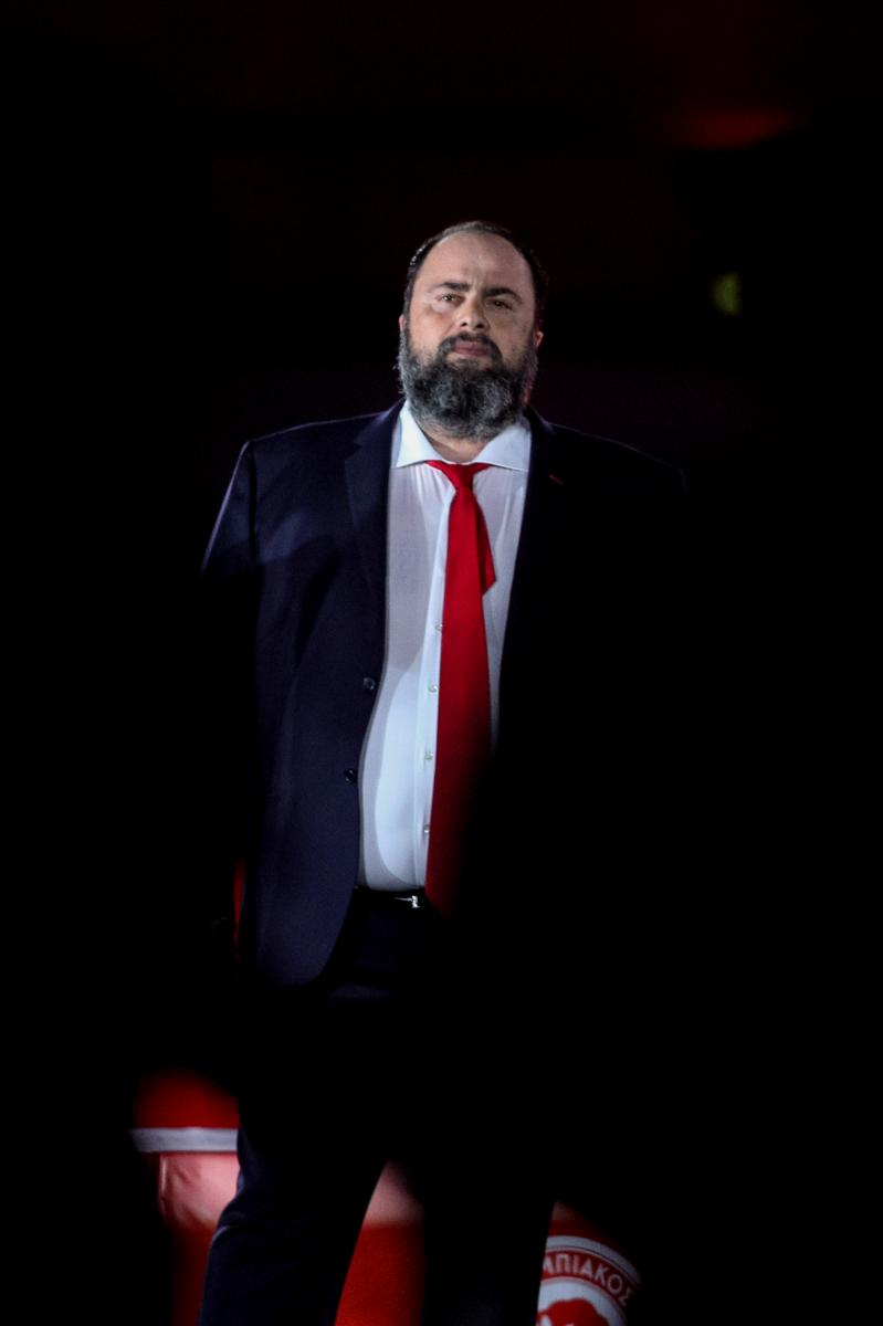 Ο ιδιοκτήτης της ΠΑΕ, Βαγγέλης Μαρινάκης, παρέλαβε το βαρύτιμο τρόπαιο από τα χέρια της αναπληρώτριας προέδρου της Λίγκας, Κάτιας Κοξένογλου, και το σήκωσε πρώτος στον αέρα, πανηγυρίζοντας στη συνέχεια μαζί με την υπόλοιπη ομάδα και αφιερώνοντας τον εφετινό τίτλο στον επίτιμο πρόεδρο των «ερυθρόλευκων», Σάββα Θεοδωρίδη.