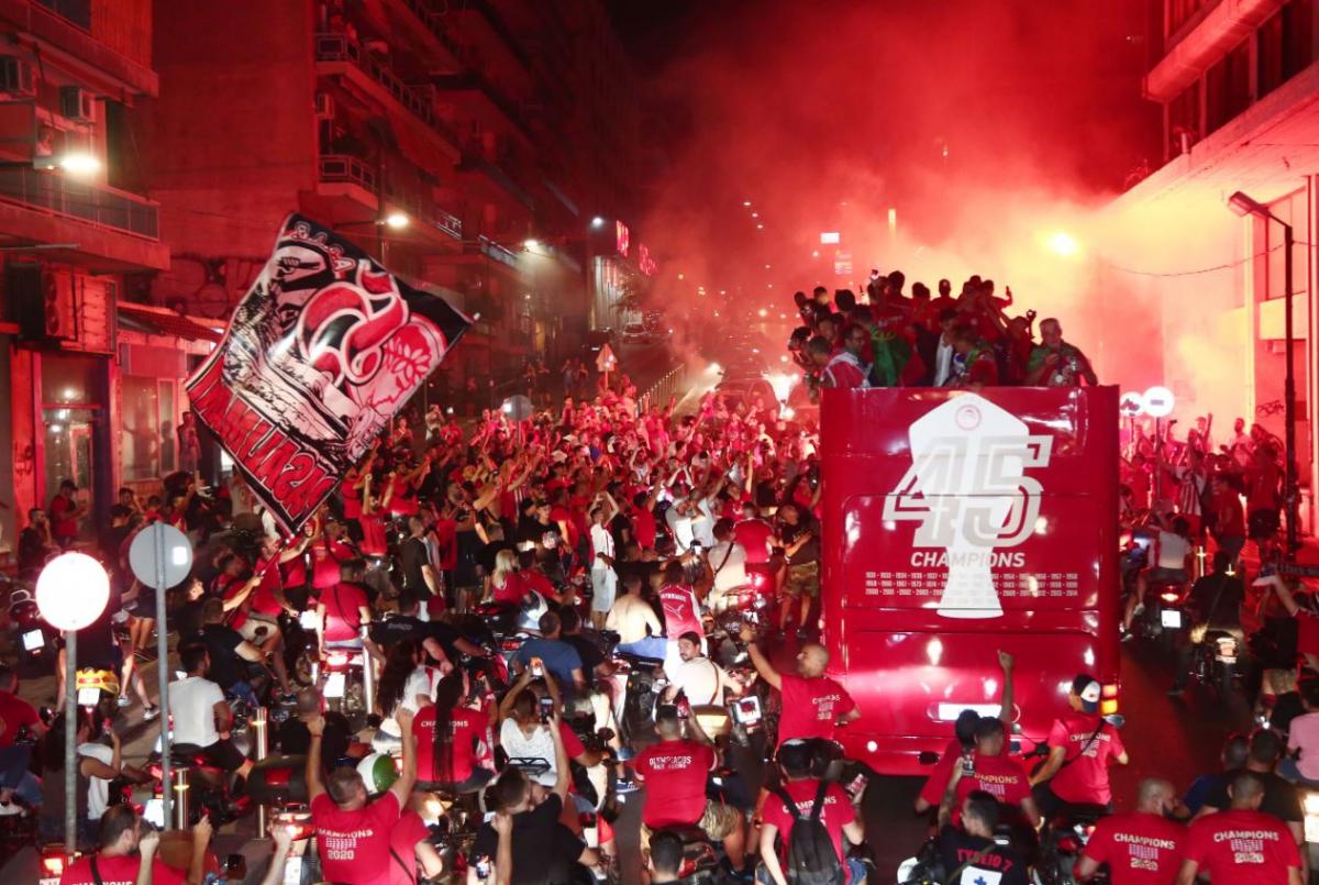 Το τρόπαιο πέρασε από τα χέρια όλων των παικτών, του προπονητή, Πέδρο Μαρτίνς, το οποίο ήταν και το πρώτο της καριέρας του, αλλά και όσων συνέβαλαν στη φετινή… κούρσα του Ολυμπιακού μέχρι την κορυφή. Στη συνέχεια οι ποδοσφαιριστές επιβιβάστηκαν στο ειδικά διαμορφωμένο πούλμαν της ομάδας και έκαναν τον γύρο του Πειραιά, γνωρίζοντας την αποθέωση από τον κόσμο της ομάδας που ξέχασε τον κορωνοϊό και τις αποστάσεις.