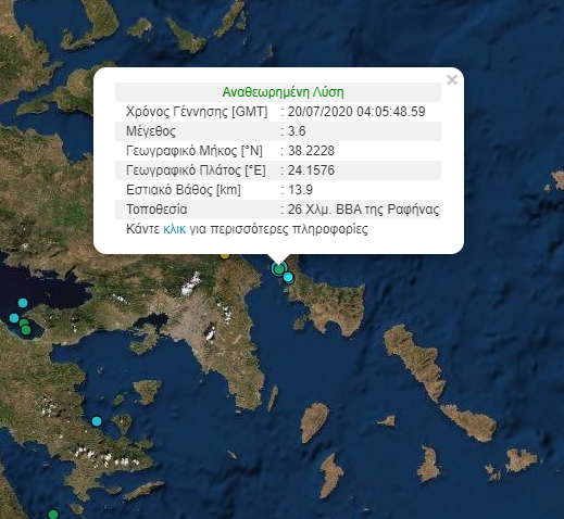 Το επίκεντρο της εντοπίζεται σε απόσταση 26 χλμ βόρεια-βορειοανατολικά της Ραφήνας, στην περιοχή Μαρμάρι, στην Εύβοιια.