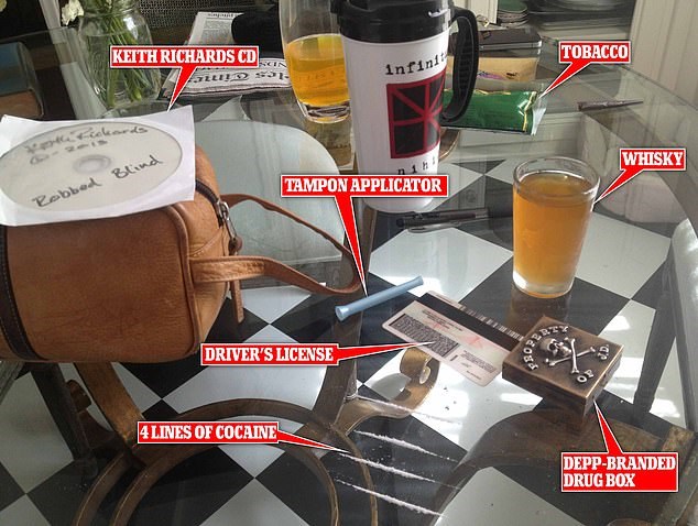 Η Χερντ έβγαλε τη φωτογραφία στο σπίτι στο Λος Άντζελες το 2013 προτού το ζευγάρι έχει επικό καβγά για τις καταχρήσεις του Ντεπ. Στη φωτογραφία φαίνονται ακόμη καπνός και ένα CD του Κιθ Ρίτσαρντς κα ιη φωτογραφία τραβήχτηκε το απόγευμα όπου ο Ντεπ αναμενόταν να μαγνητοσκοπήσει το ντοκιμαντέρ του θρύλου των Rolling Stones.