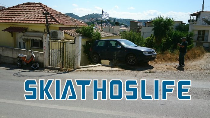 Όπως αναφέρει το skiathoslife.gr, το ατύχημα συνέβη λίγο μετά τις 13:00 όταν έντρομοι περαστικοί είδαν το μπλε σκούρο αυτοκίνητο μάρκας Volkswagen να σπάει το προστατευτικό τοιχίο της οικίας και να βρίσκεται στην κυριολεξία στον αέρα μεταξύ της οικίας και παράπλευρου οικοπέδου στην περιοχή “Ακρόπολη” .