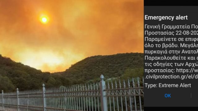 «Παραμείνετε σε επιφυλακή όλο το βράδυ. Μεγάλη δασική πυρκαγιά στην Ανατολική Μάνη. Παρακολουθείτε και ακολουθείστε τις οδηγίες των Αρχών», ανέφερε το μήνυμα.