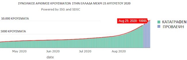 Όπως αναφέρει το tvxs.gr, επικαλούμενο το «Βήμα», το Ινστιτούτο προβλέπει αύξηση των κρουσμάτων άνω των 300 καθημερινά μέσα στις επόμενες ημέρες και υπέρβαση του ορίου των 10.000 συνολικά κρουσμάτων στις 29 Αυγούστου ή και μία ημέρα νωρίτερα.