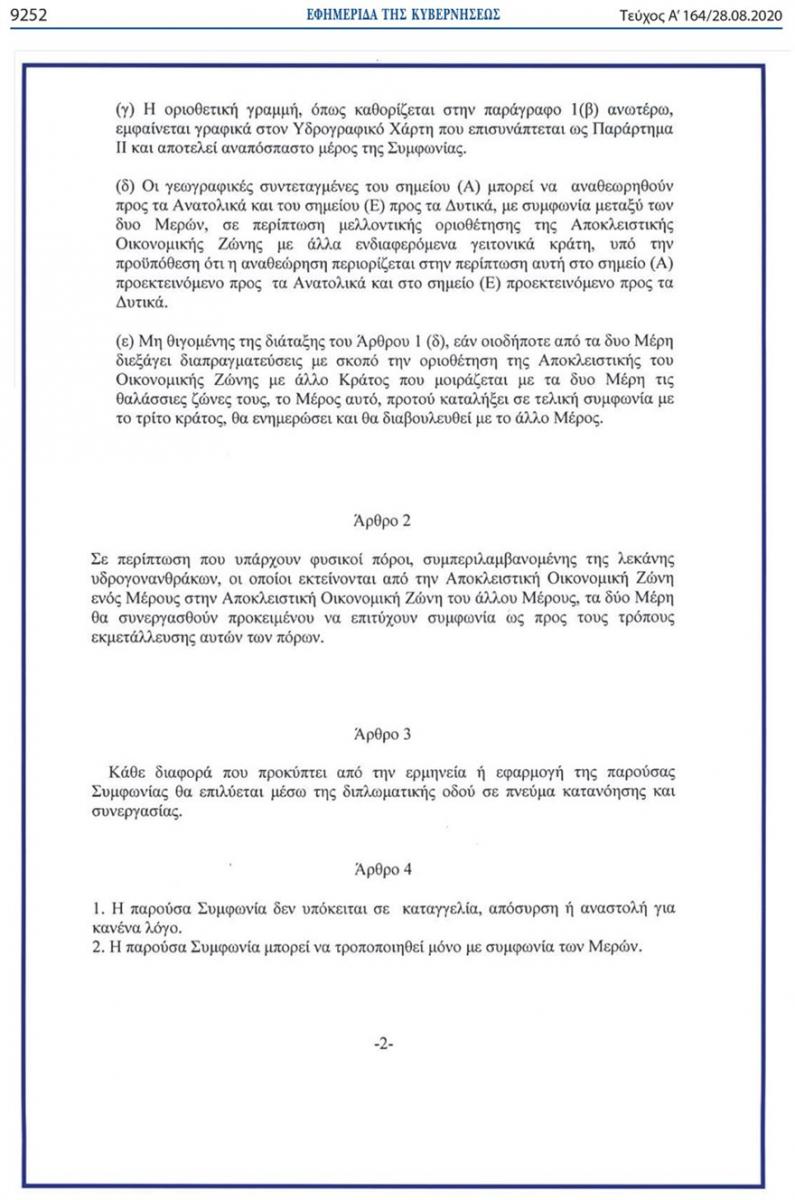 Νόμος του Κράτους είναι πλέον οι δύο Συμφωνίες οριοθέτησης θαλάσσιων ζωνών με Ιταλία και Αίγυπτο καθώς το βράδυ της Παρασκευής δημοσιεύτηκαν στην Εφημερίδα της Κυβερνήσεως.
