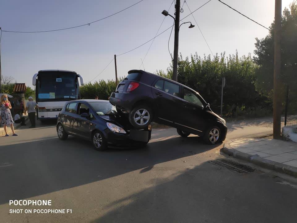 Απίστευτο τροχαίο στη Χαλκιδική: Αυτοκίνητο βρέθηκε πάνω σε… αυτοκίνητο (Photos)