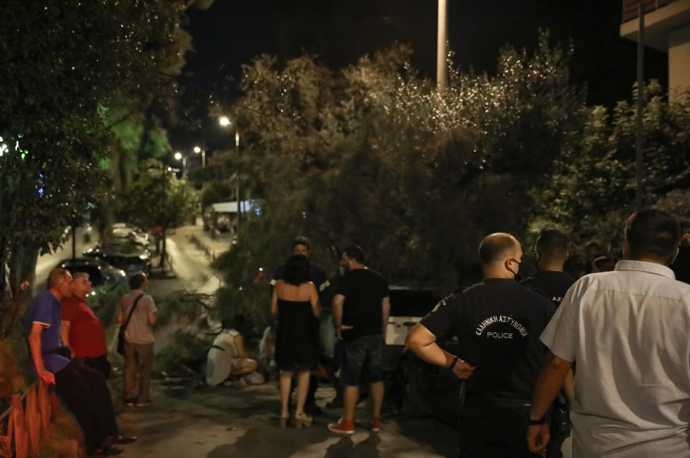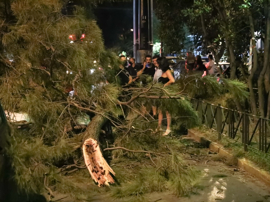 Παρέες νεαρών κατάφεραν, ακούγοντας τον ήχο του σπασίματος του κλαδιού, να απομακρυνθούν έγκαιρα, όχι όμας και ένας περαστικός που χτυπήθηκε από το κλαδί.