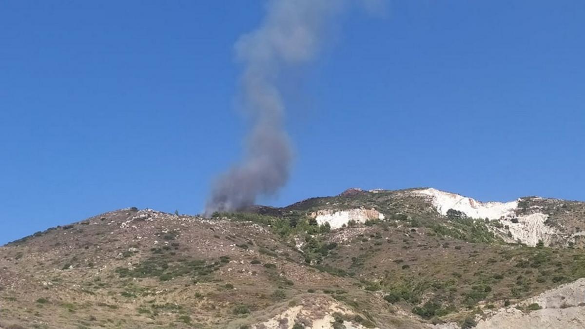 Σύμφωνα με την πυροσβεστική Υπηρεσία, η φωτιά -που κατευθύνεται προς τη θάλασσα- καίει χορτολιβαδική έκταση.