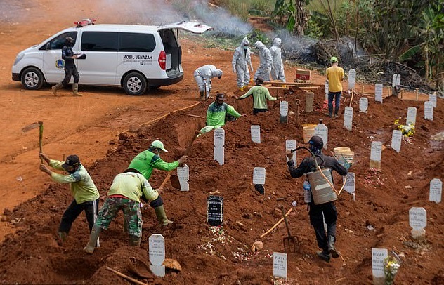 Στην περιφέρεια Γκρεσίκ της ανατολικής Ιαβας της Ινδονησίας δεν ανέχονται τους αρνητές της μάσκας. ‘Οποιος ή όποια συλληφθεί να μη φοράει μάσκα σε χώρους που πρέπει όχι μόνο δέχεται χρηματικό πρόστιμο αλλά και με συνοπτικές διαδικασίες τον στέλνουν στο νεκροταφείο της περιοχής και είναι υποχρεωμένος να σκάψει τουλάχιστον έναν τάφο για τους νεκρούς του covid 19.