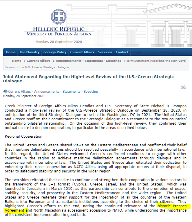 Μια παρέμβαση με νόημα στο κείμενο του κοινού ανακοινωθέντος Ελλάδας-ΗΠΑ που αναρτήθηκε –στα αγγλικά– στον ιστοχώρο του υπουργείου Εξωτερικών καταγγέλει ο ΣΥΡΙΖΑ, υποστηρίζοντας ότι η κυβέρνηση απάλειψε τον όρο «ιστορική» για τη Συμφωνία των Πρεσπών, που αρχικά είχε εμφανιστεί όπως φαίνεται και από screenshots.