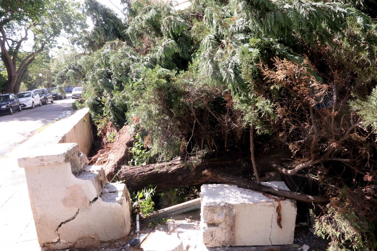 «Έχουν πέσει πάνω από 150 δέντρα και έχουν σπάσει κολώνες της ΔΕΗ, ακόμη και τσιμεντένιες, από τον πολύ ισχυρό άνεμο. Γι’ αυτό δεν υπάρχει ρεύμα σε κάποιες περιοχές, ενώ έχουμε πολλές ζημιές σε σπίτια και κυρίως σε στέγες που έχουν ξεριζωθεί. Αυτήν τη στιγμή, πρώτο μέλημά μας είναι το οδικό δίκτυο, να ανοίξουν οι δρόμοι γιατί υπάρχει μεγάλο πρόβλημα. Τα συνεργεία μας δουλεύουν πυρετωδώς και σιγά σιγά προχωράμε σε πλήρη καταγραφή των ζημιών» είπε στο Αθηναϊκό Πρακτορείο ο κ. Μπάμπαλος.