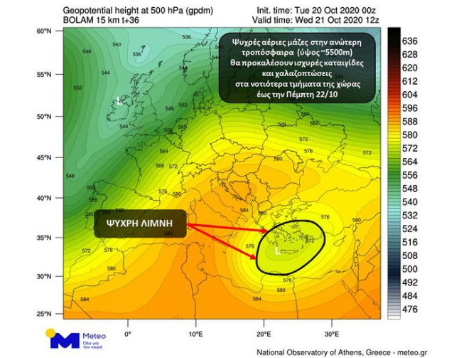 Η κακοκαιρία που εκδηλώνεται στη νότια νησιωτική χώρα με ισχυρές βροχές και καταιγίδες και κατά τόπους χαλαζοπτώσεις, θα συνεχιστεί και σήμερα Τετάρτη (21-10-2020), ενώ εξασθένηση των φαινομένων αναμένεται σταδιακά από την Πέμπτη (22-10-2020).