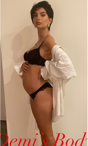 Το μοντέλο θέλησε, μάλιστα, να αναπαραστήσει μια από τις πιο χαρακτηριστικές φωτογραφίες εγκύου του Χόλιγουντ, ποζάροντας στον φακό σαν άλλη… Ντέμι Μουρ!