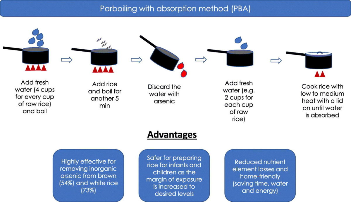 Σύμφωνα με τους ερευνητές, αυτή η τεχνική αφαιρεί περίπου το 54% του αρσενικού στο καστανό ρύζι και περίπου το 73% στο λευκό ρύζι, ενώ διατηρεί γενικά το μεγαλύτερο μέρος των θρεπτικών συστατικών φωσφόρου, καλίου, μαγνησίου, ψευδαργύρου και μαγγανίου.