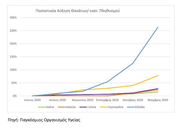 Και η ανακοίνωση της ΝΔ καταλήγει με το εξής υστερόγραφο: «Υ.Γ. Επισυνάπτεται το διάγραμμα των Syriza statistics που παρουσίασε στη τελευταία συνέντευξη τύπου του ο κ. Τσίπρας και το διάγραμμα του ECDC για τις ίδιες χώρες και την ίδια περίοδο».